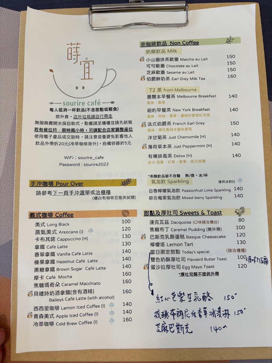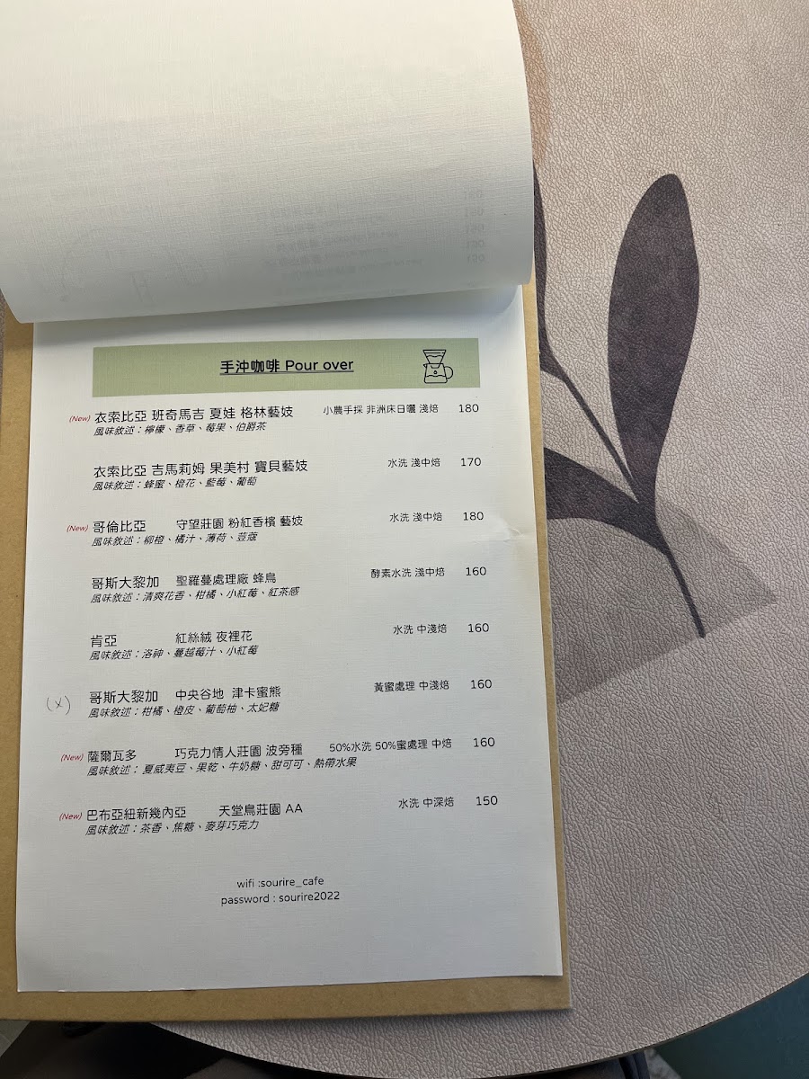 For true coffee aficionados, their Pour Over selection is not to be missed, featuring exquisite beans like the ethereal Ethiopian Yirgacheffe G1 with notes of jasmine and lemon for NT$170. Customers rave about the cozy atmosphere, complete with Monet-inspired decor and comfortable seating—perfect for both social gatherings and quiet study moments. Overall, 蒔宜咖啡 Sourire Café embodies an inviting blend of quality, comfort, and creativity.